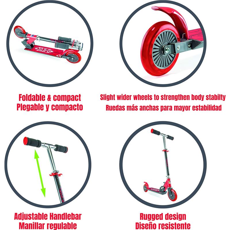 Patinete 2 ruedas plegable rojo. altura con dos posicones 72-77 cm soporta 50 kg