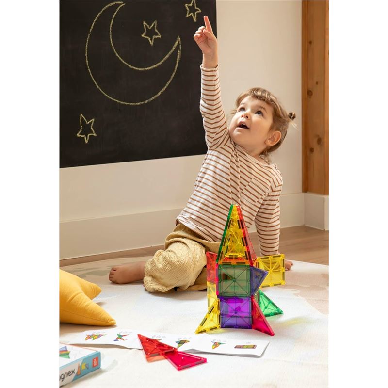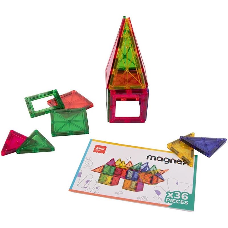 Set de piezas magnéticas 3d: contiene 36 formas geométricas imantadas de diferentes tamaños y colores, ideales para crear construcciones creativas y estructuradas. incluye guía ilustrada con modelos de ejemplo. las instrucciones ayudan a inspirar nuevas construcciones y fomentan el juego autónomo y exploratorio.