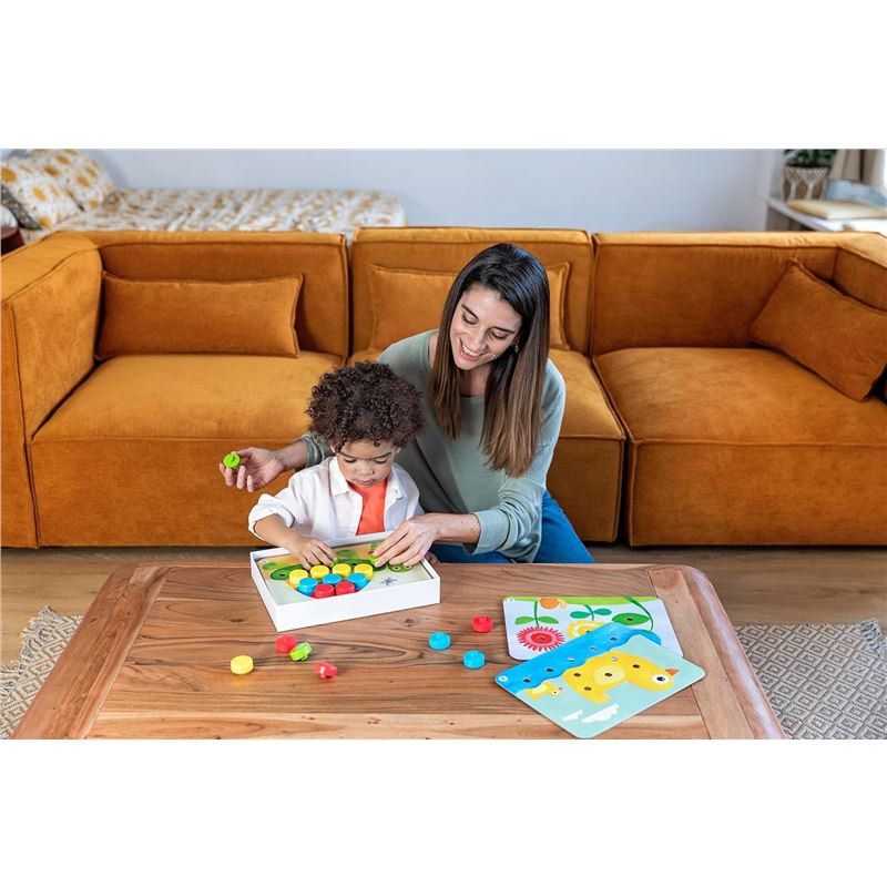 Juego educativo preescolar en el que los más pequeños aprenden los colores encajando correctamente los pivotes en cada lámina