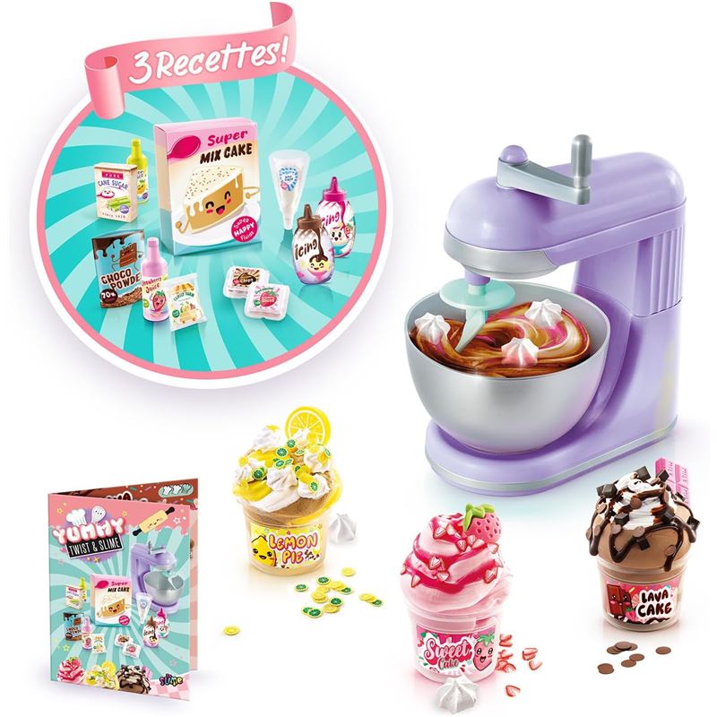 ¡un mezclador de slime para crear tus slimes como un auténtico profesional! incluye una guía de recetas para que puedas crear slimes realmente únicos. pon tu slime blanco en la batidora, añade el tinte y las decoraciones y ¡mira cómo se mezcla!