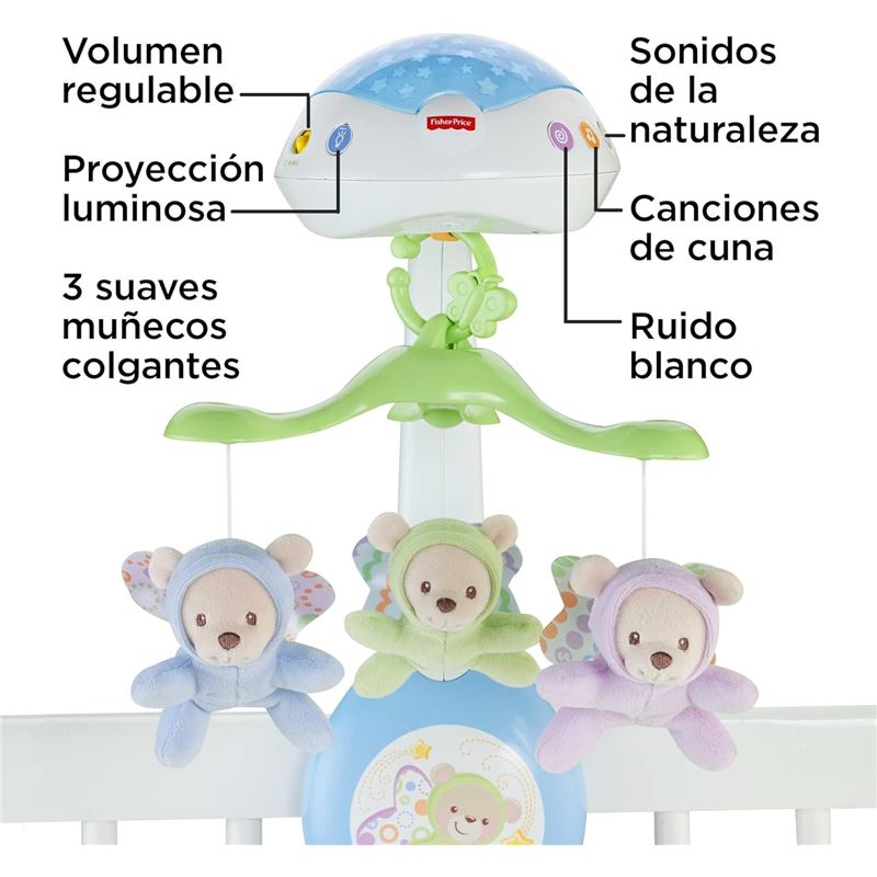 el móvil ositos voladores se adapta al crecimiento del niño, ya que se puede usar como móvil de cuna, en un proyector musical de mesa y en un móvil portatil para el cochecito. envuelve al niño con imágenes reconfortantes, luces de estrella, música, susurros y sonidos de la naturaleza. las tres opciones suman más de 30 minutos de sonido.