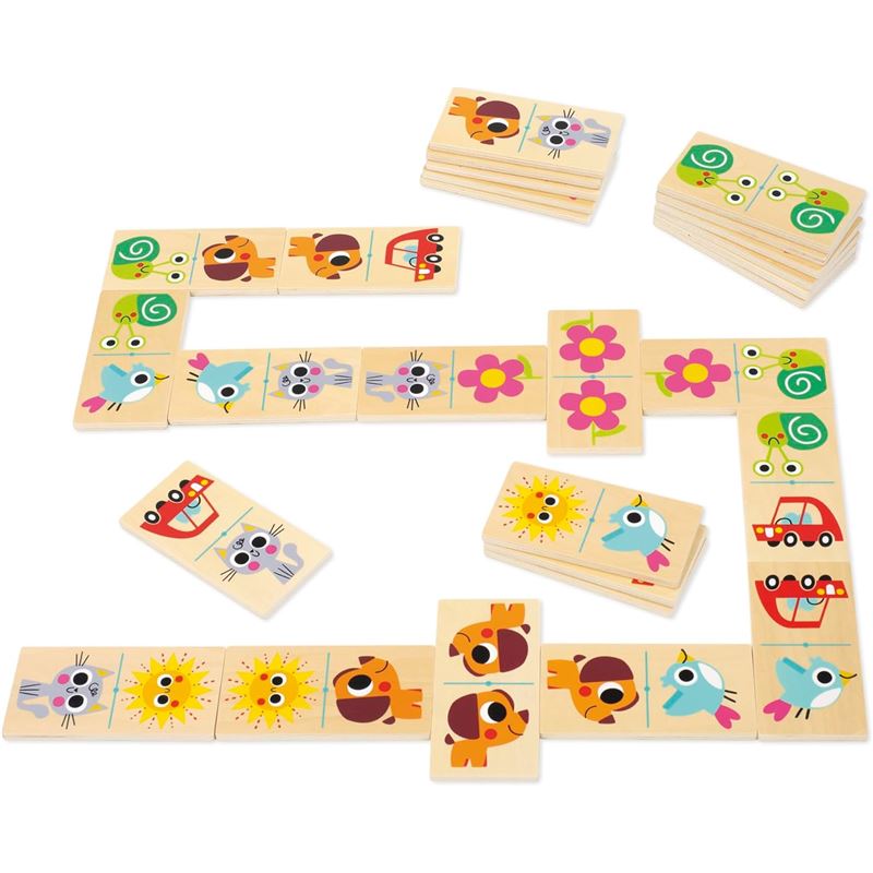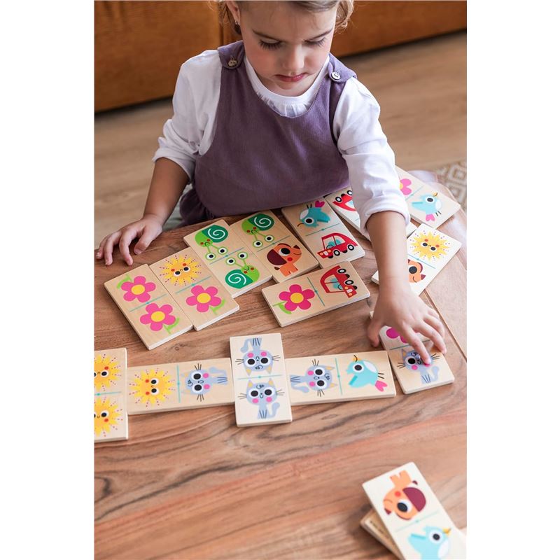 Dominó gigante con imágenes que permiten a los más pequeños divertirse observando los detalles de cada imagen y asociándolos.