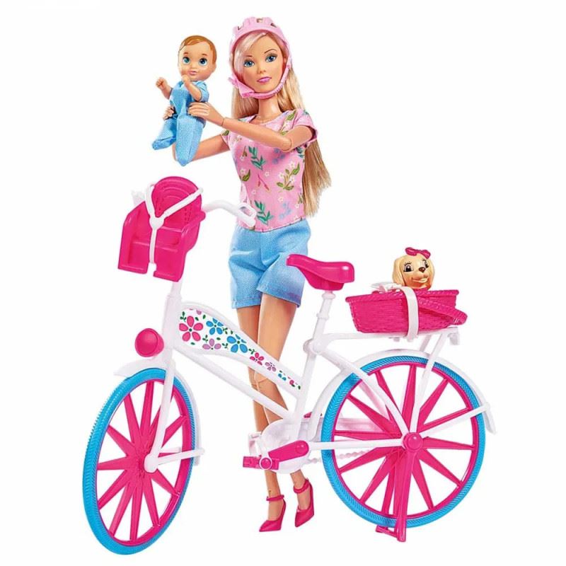 La combinación de steffi love y una bicicleta es una fórmula ganadora para horas de diversión. este set permite a las niñas vivir aventuras al aire libre junto a su muñeca favorita. el set incluye: una muñeca steffi, una bicicleta, un perro pequeño, un bebe y múltiples accesorios. edad recomendada: +3 años.