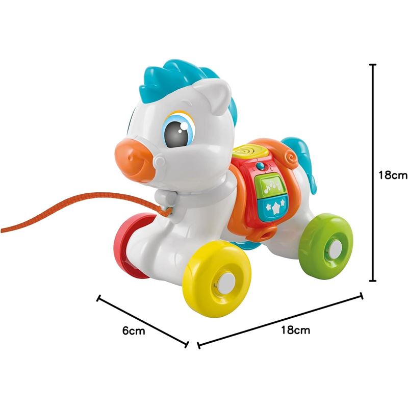 • gracias a los botones interactivos, las ruedas y la cuerda,el poni favorece el desarrollo sensorial y