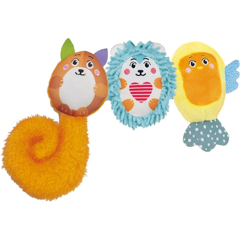 ¡este precioso colgador espiral soft será un compañero inseparable de tu bebé! ¡el simpático mapache y sus tiernos amigos del bosque forman un suave colgador en espiral, para entretener y divertir al niño gracias a los diferentes materiales y los sonajeros de los colgantes!