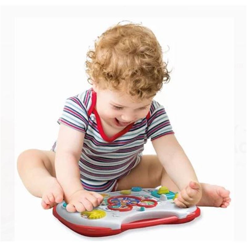 la tableta tiene en el centro una membrana táctil con contenidos educativos.