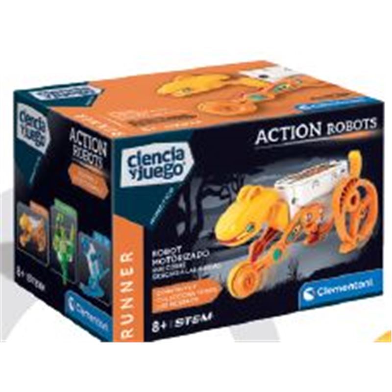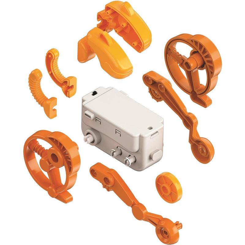 el kit contiene un módulo electrónico y una serie de componentes para construir un robot capaz de correr.