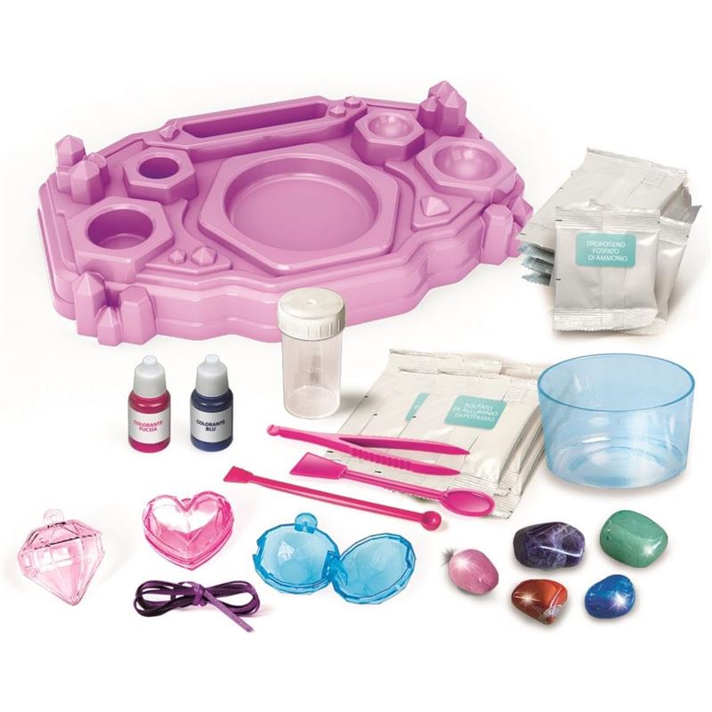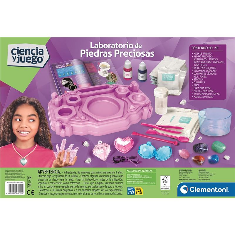 incluye una práctica estación de trabajo para crear cristales gigantes y gemas brillantes, así como para examinar piedras preciosas.