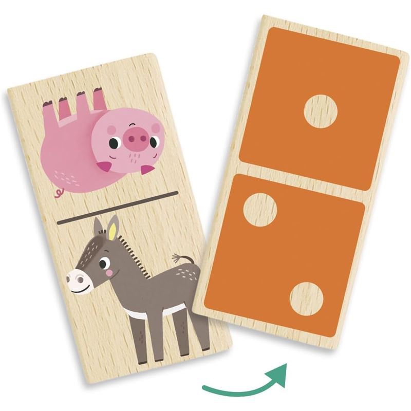 Dominó con piezas de madera que permite a los más pequeños observar los detalles de cada imagen y asociarlas