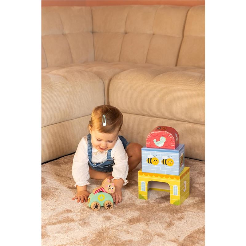 Un juego de iniciación ideal para bebés, que incluye un sonajero, un coche y tres bloques de construcción grandes diseñados para manos pequeñas. favorece el desarrollo temprano mediante la exploración sensorial y el juego imaginativo.