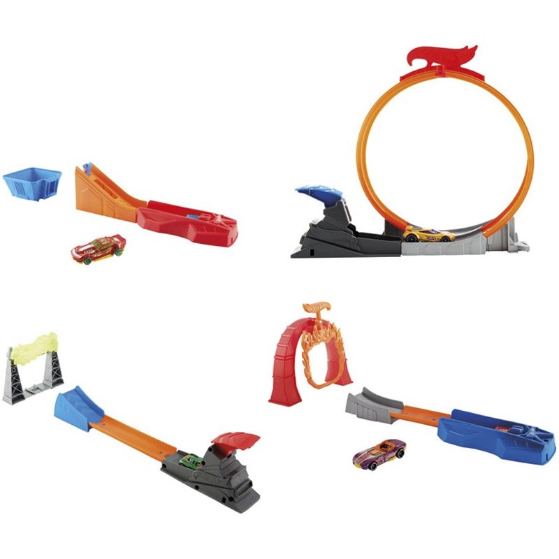 Este surtido permite realizar un montón de juegos clásicos y sencillos de hot wheels con coches emblemáticos, geniales pistas naranjas y un lanzador. los niños pueden saltar sobre el rayo de electricidad con la torre eléctrica, lanzar coches para saltar sobre el fuego, correr por el looping o dar una voltereta con cuatro opciones acrobáticas distintas. qué altura, qué distancia y qué velocidad alcanzarán los coches? las cuatro pistas acrobáticas presentan funciones únicas y ofrecen un montón de emociones fuertes. cada pista se puede conectar a otras pistas hot wheels (se venden por separado) para construir un circuito épico. cada una de las pistas incluye un coche de hot wheels. no compatible con algunos vehículos de hot wheels. a partir de 3 años.