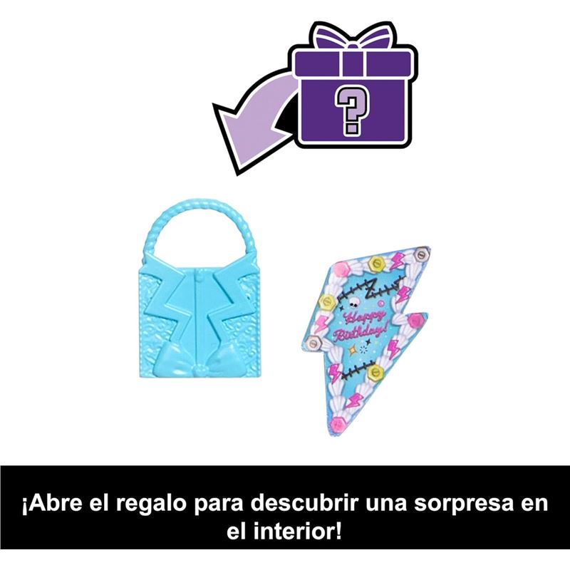 ¡draculaura cumple 1600 años y las alumnas de monster high lo celebran con una fiesta de cumplespantos de lo más terrorífica! la muñeca frankie stein está lista para un baile electrizante con su chisporroteante atuendo y sus accesorios magnéticos.