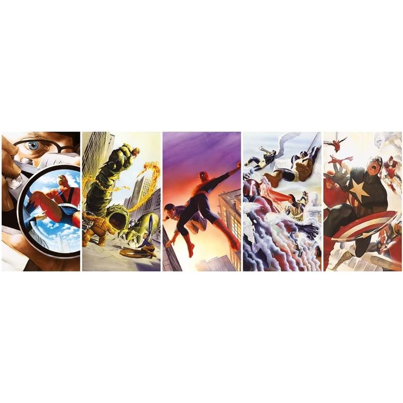 Puzzle adulto 1000 piezas panorámico, con láminas de alta calidad de impresión, y troquelado preciso; con imágenes de marvel y superhéroes